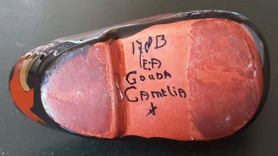 makers mark is EA for Ed Antheunis, which is the name of the pottery that made the clog. The reddish colour in both clogs is remarkable; when in a sunny spot it has a bright red to orange glow.